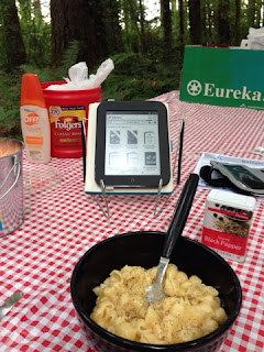 I had just sat down to dinner (one-pot Mac n cheese made over the one-burner propane stove, turned out quite well) when I heard rain drops patter on the canopy. So this